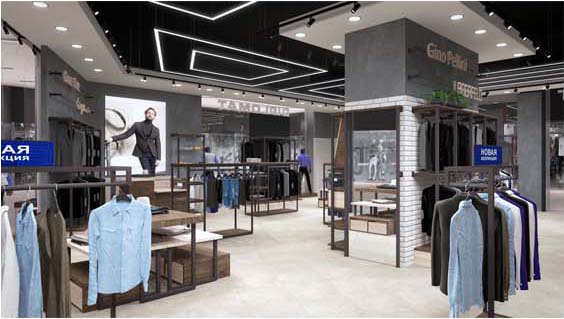 Мы придаем большое значение дизайну магазинов и привлекаем для создания интерьеров ведущие европейские конструкторские бюро. С 2019 года магазины открываются в новом дизайне, который призван привлекать целеустремлённых и стильных мужчин, ценящих своё время и комфорт. Новые магазины не только привлекательны, но и функциональны. Для оформления используются натуральные материалы (дерево, камень, металл), пространство магазина зонировано, таким образом, чтобы было удобно выбирать товары из разных стилей или коллекций. Отдельно мы выделяем зоны Сasual и Jeans.